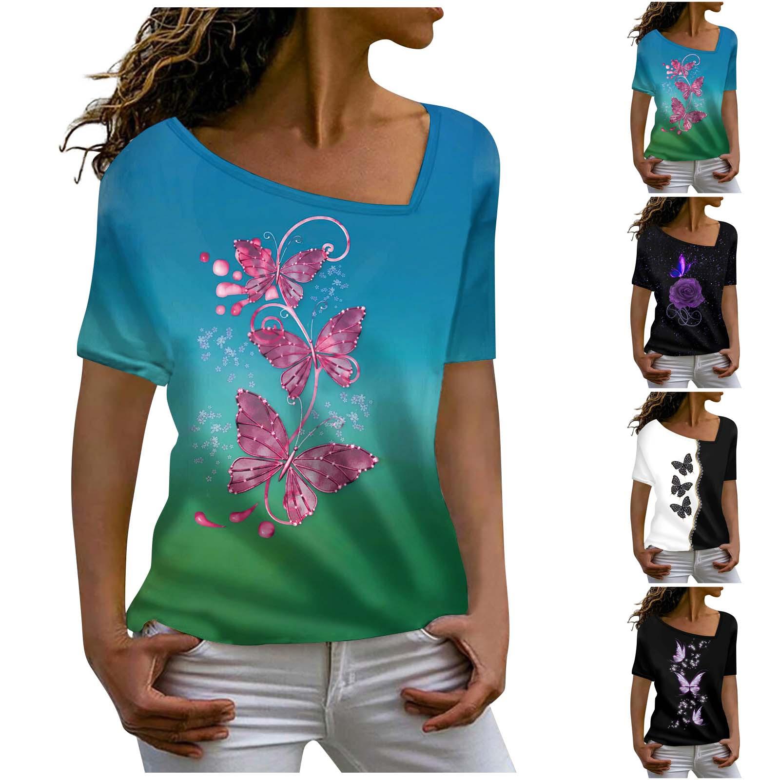 Женская летняя модная повседневная футболка с коротким рукавом в стиле ретро с V-образным вырезом и принтом, топ