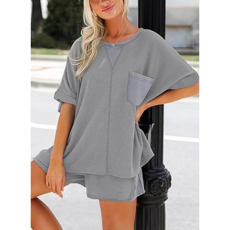 Женская летняя новая вафельная свободная футболка с рукавом пять четвертей и круглым вырезом в стиле пэчворк XXL серый