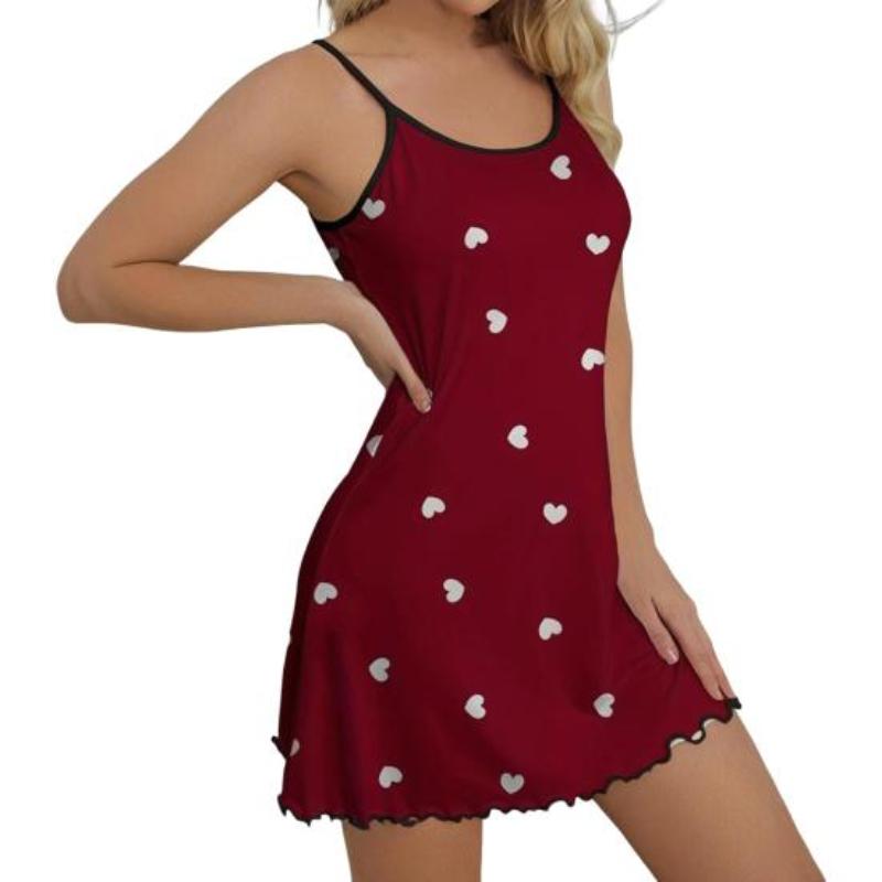 Женская летняя ночная рубашка с принтом в виде сердца, присборенная кромка, без рукавов, открытая спина, тонкие бретельки, А-силуэта, мини-платье для сна, тонкая ночная рубашка выше колена M