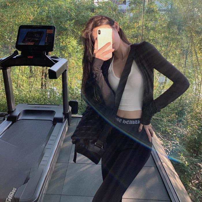 Женская летняя облегающая куртка для йоги с капюшоном и длинными рукавами из ледяного шелка, 2023 Small чёрный