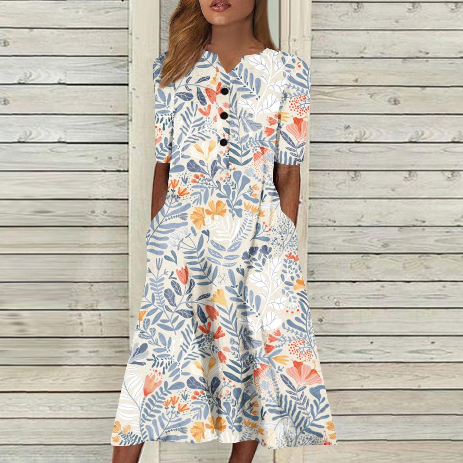 Женская летняя повседневная модная пляжная свинг-юбка с v-образным вырезом и короткими рукавами L