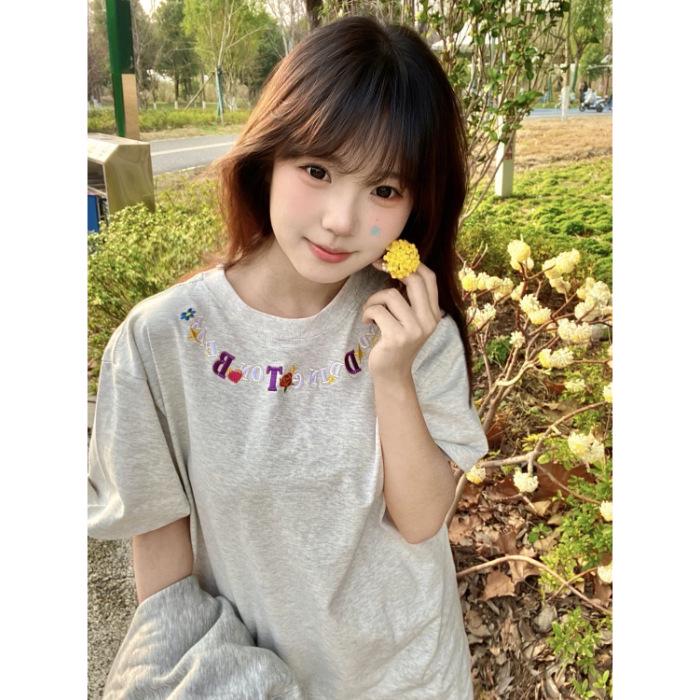 Женская летняя ретро хлопковая футболка - Свободный крой Национальный тренд Полурукав Double Extra Large