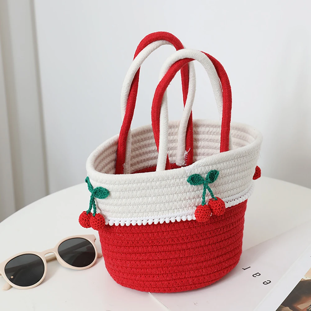 Женская летняя сумка ручной работы, плетеная хлопковая вязаная крючком дамская сумочка в виде вишни, Пляжная, морская, праздничная Сумка-то...