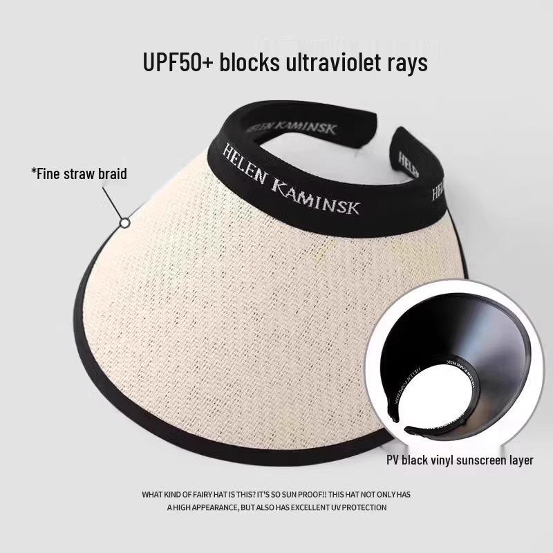 Женская летняя черная шляпа от солнца с широкими полями - Соломенная шляпа с открытым верхом с защитой от УФ-лучей для велоспорта и пляжа One Size