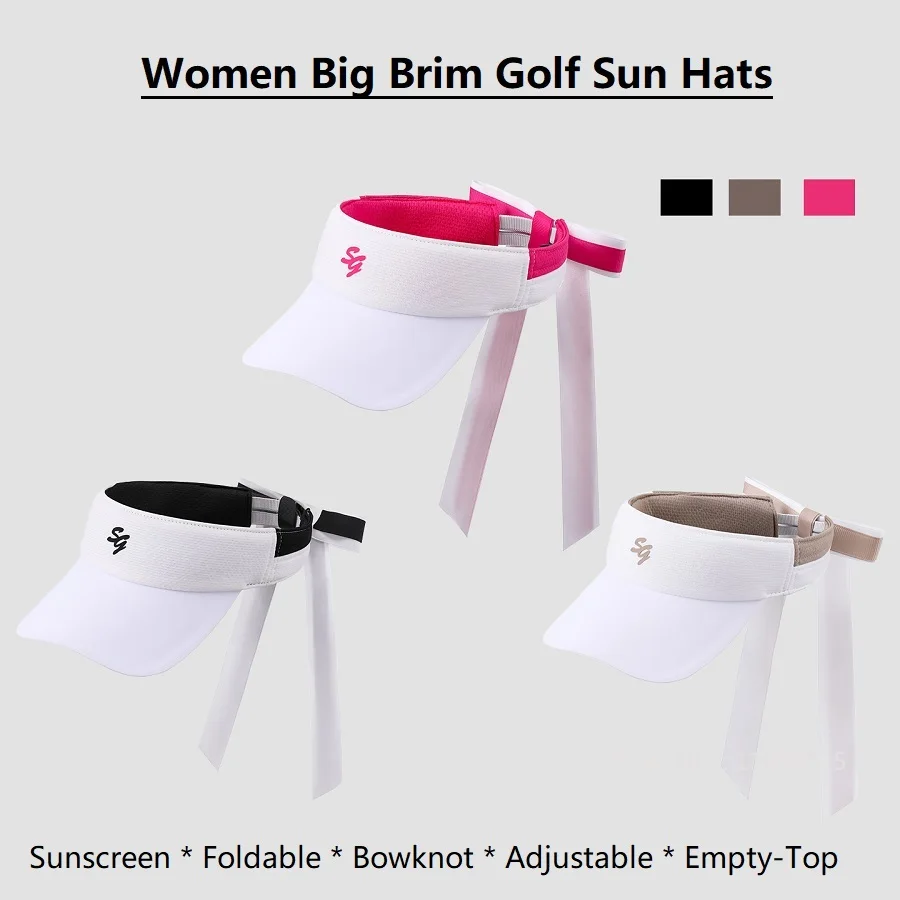 Женская летняя шляпа с козырьками, устойчивая к ультрафиолетовому излучению, складная солнцезащитная кепка для гольфа с широкими полями, пляжные шляпы с бантом, элегантный спортивный головной убор