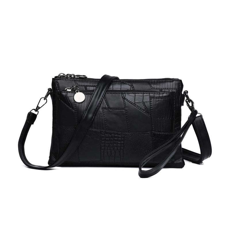 Женская лоскутная сумка-клатч, сумка через плечо, кошелек из ПУ, сумка-конверт чёрный