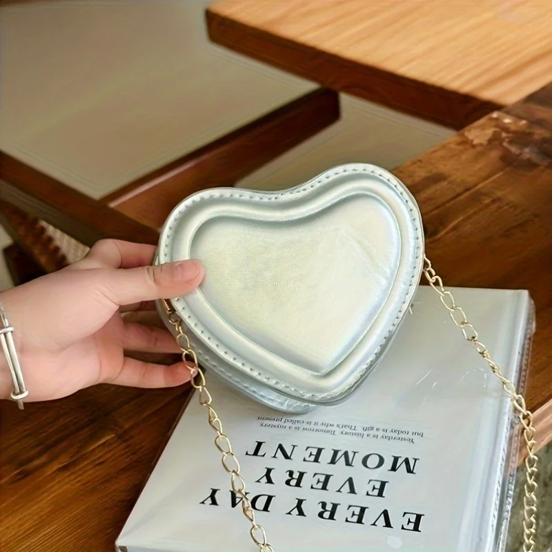 Женская мини-кожаная сумка через плечо в форме сердца, универсальный кошелек для монет на цепочке, застежка-молния, модные и повседневные универсальные сумки