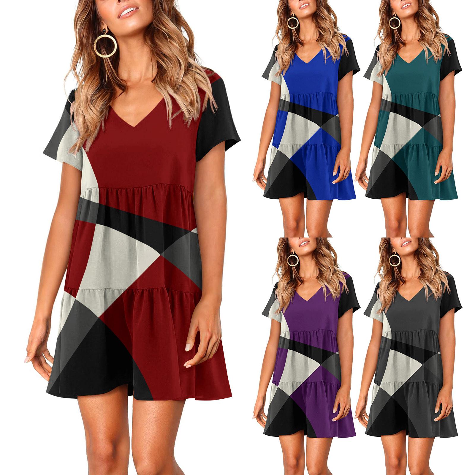 Женская мода Повседневная летняя печать с коротким рукавом Свободное платье
