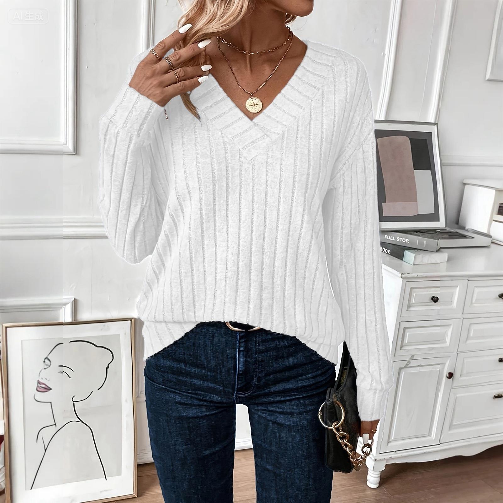 Женская мода Топ с длинным рукавом, в рубчик, элегантный, для работы и на каждый день XL белый