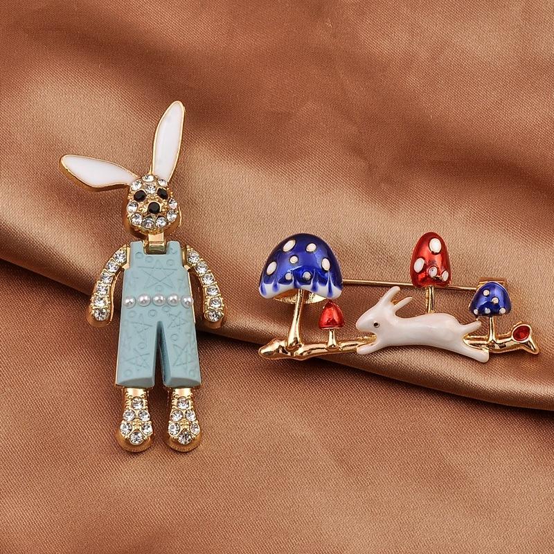 Женская мода, милые броши в виде гриба и кролика с кристаллами для женщин, роскошная брошь из эмалированного сплава золотого цвета, булавки