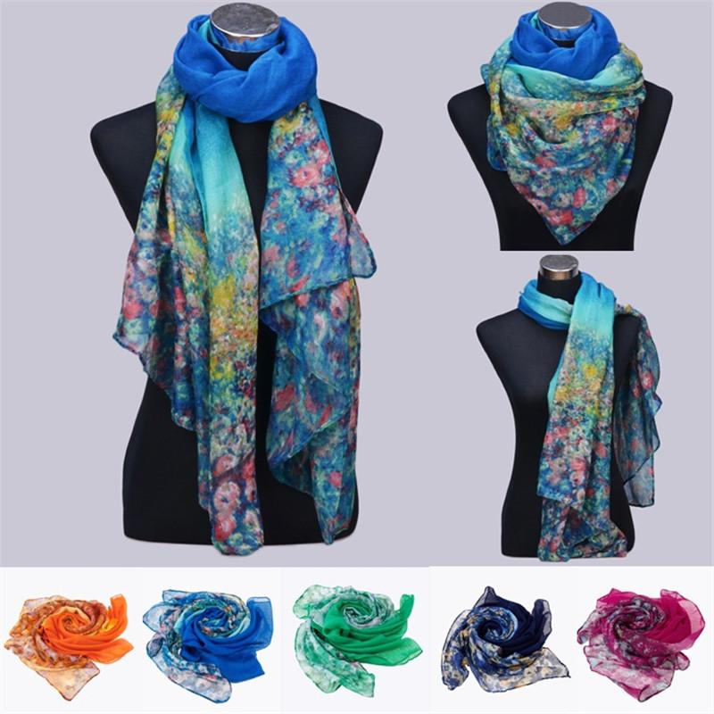 Женская мода многоцветная шифоновая мягкая теплая накидка цветочная шаль длинный шарф