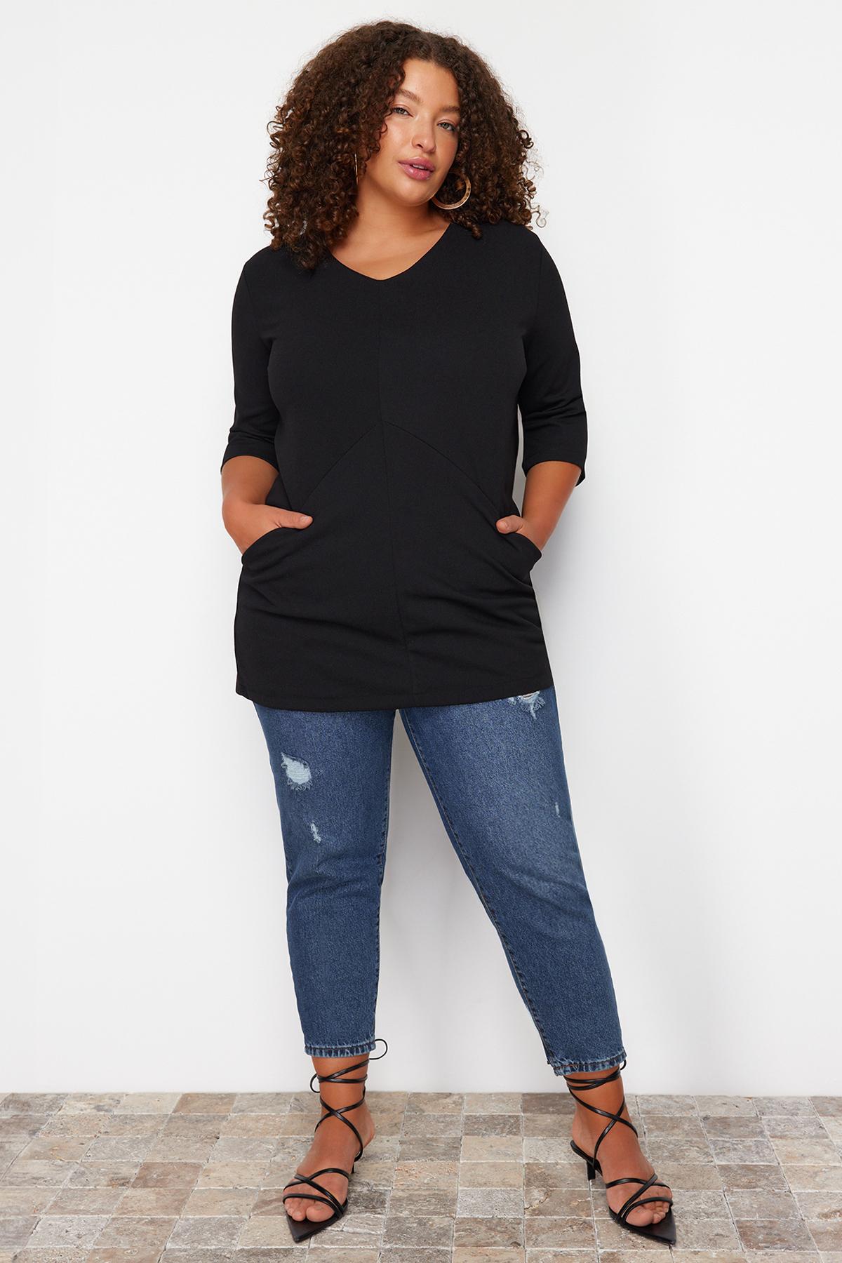 Женская мода, новая блузка большого размера, черная трикотажная блузка с рукавом три четверти