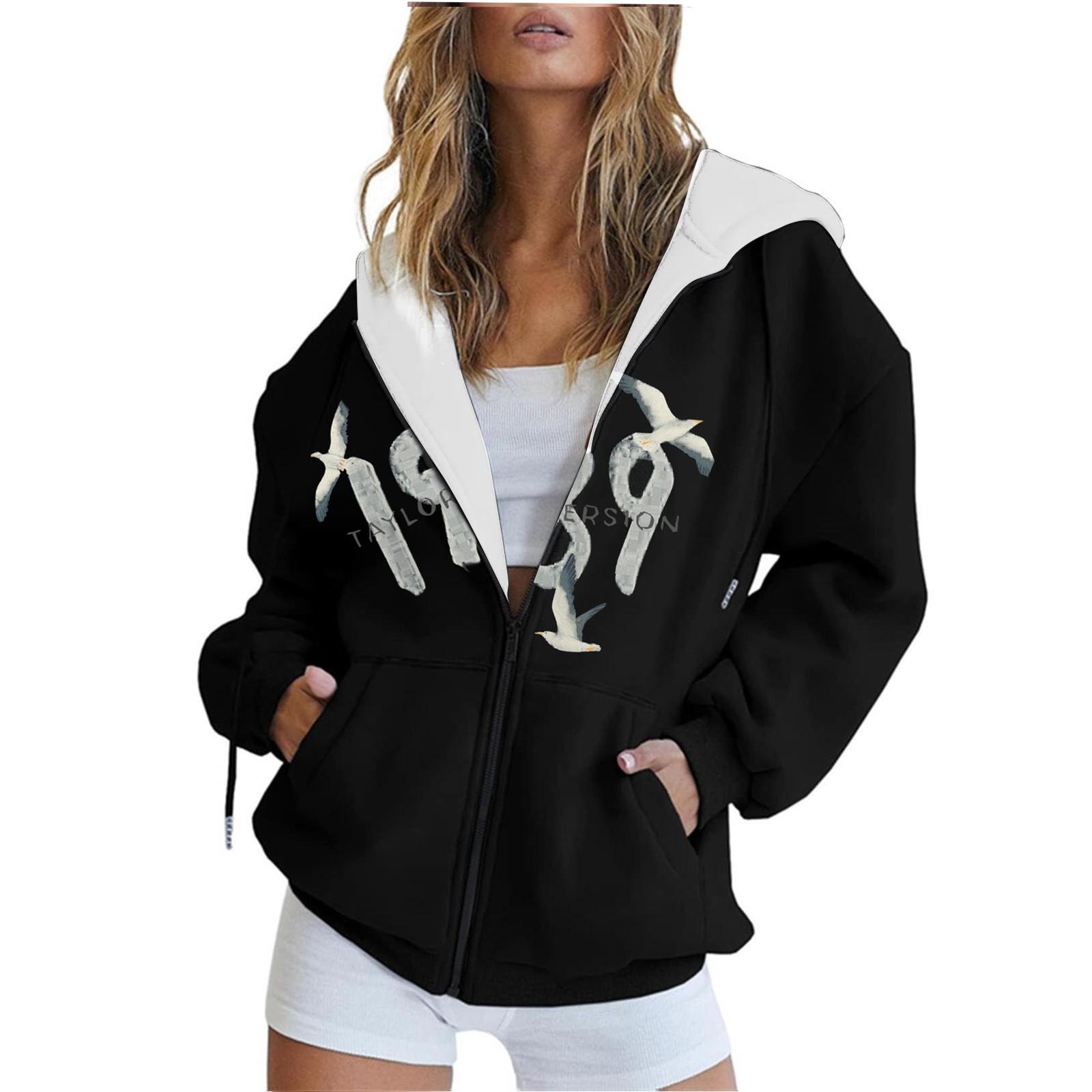 Женская мода, повседневная модная толстовка с длинным рукавом и принтом, толстовка на молнии, карманное пальто XXL чёрный