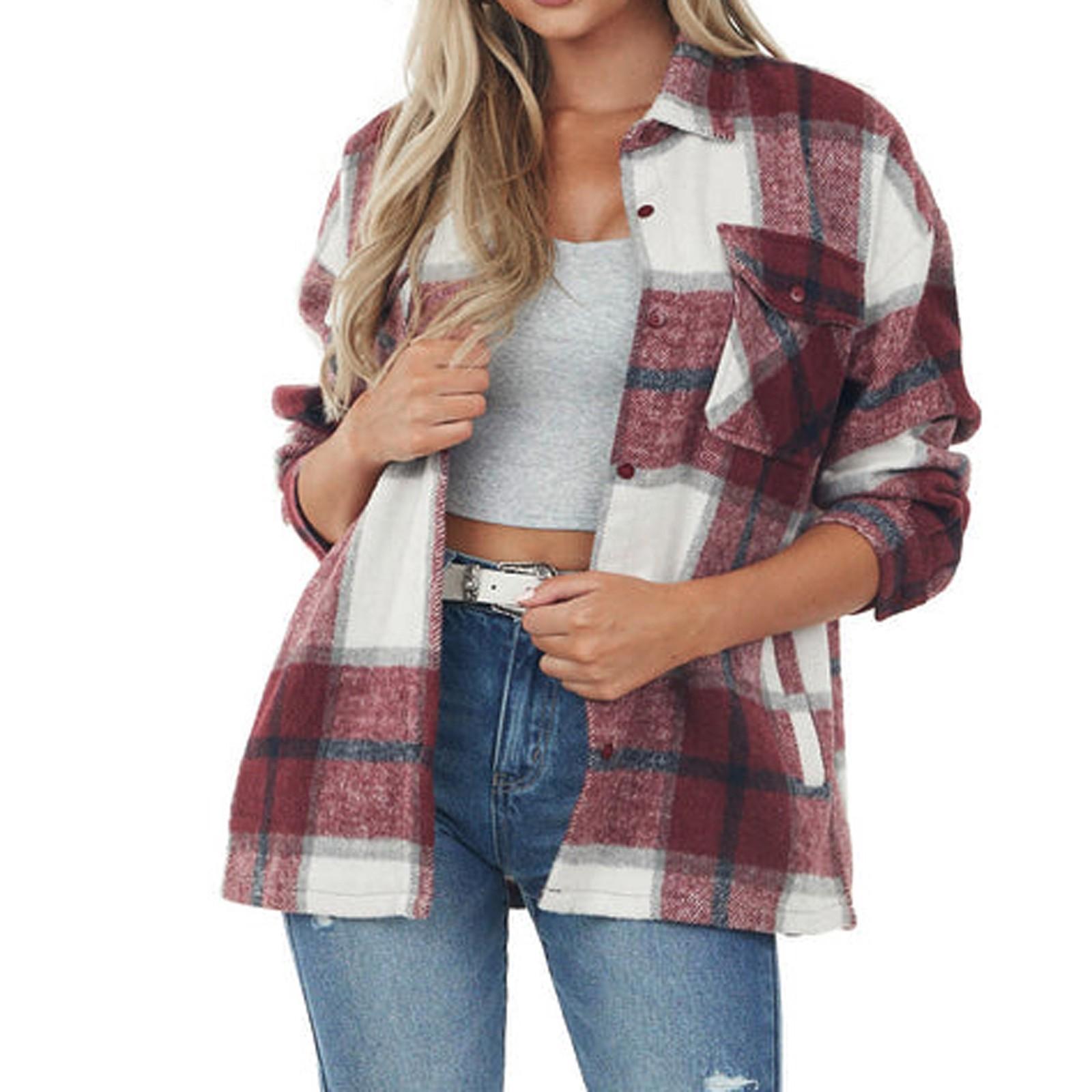 Женская мода повседневное темпераментное шитье в клетку на пуговицах шерстяное пальто с длинным рукавом XL красный