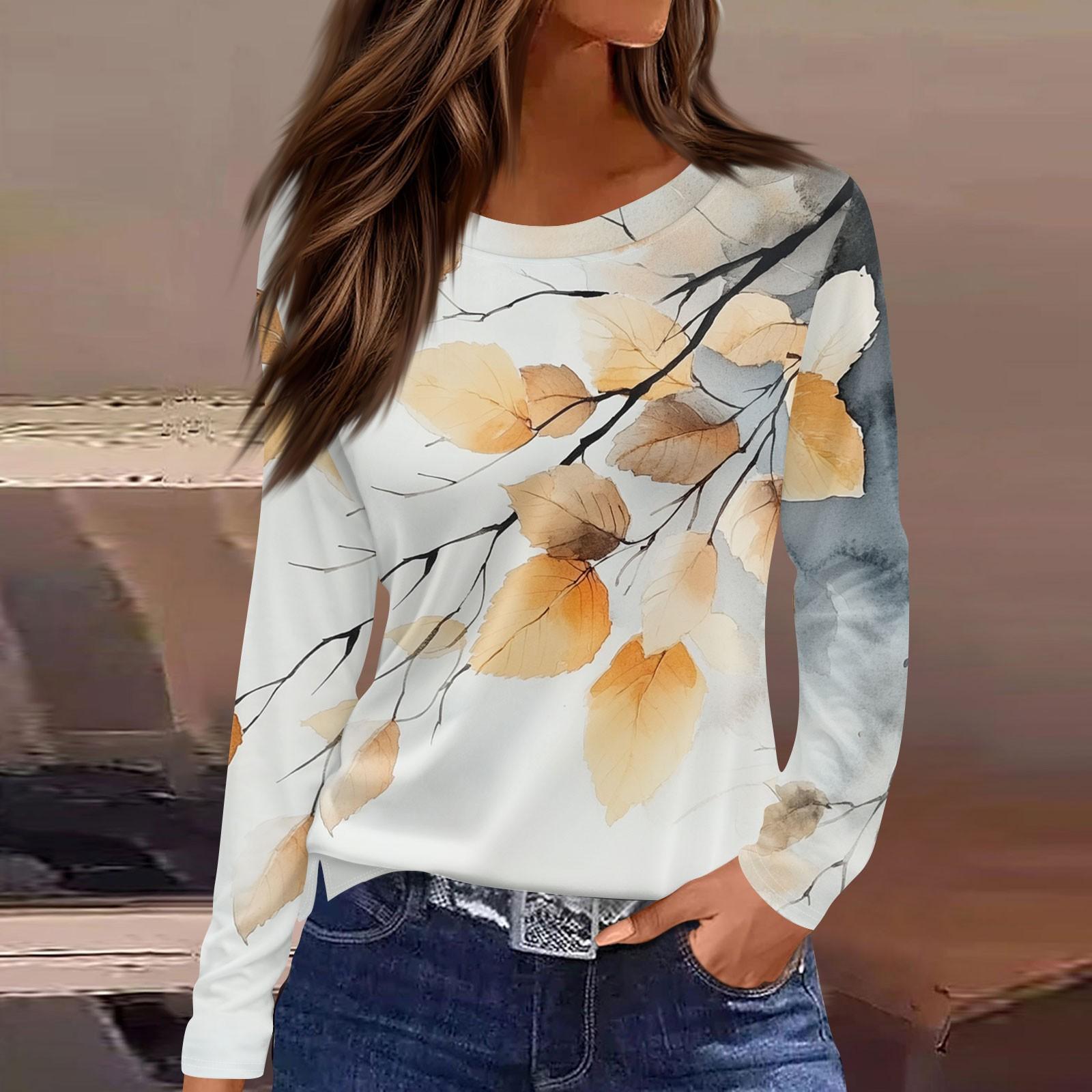 Женская мода повседневный топ с разрезом по низу и принтом мертвых листьев, круглый вырез, длинный рукав XL белый