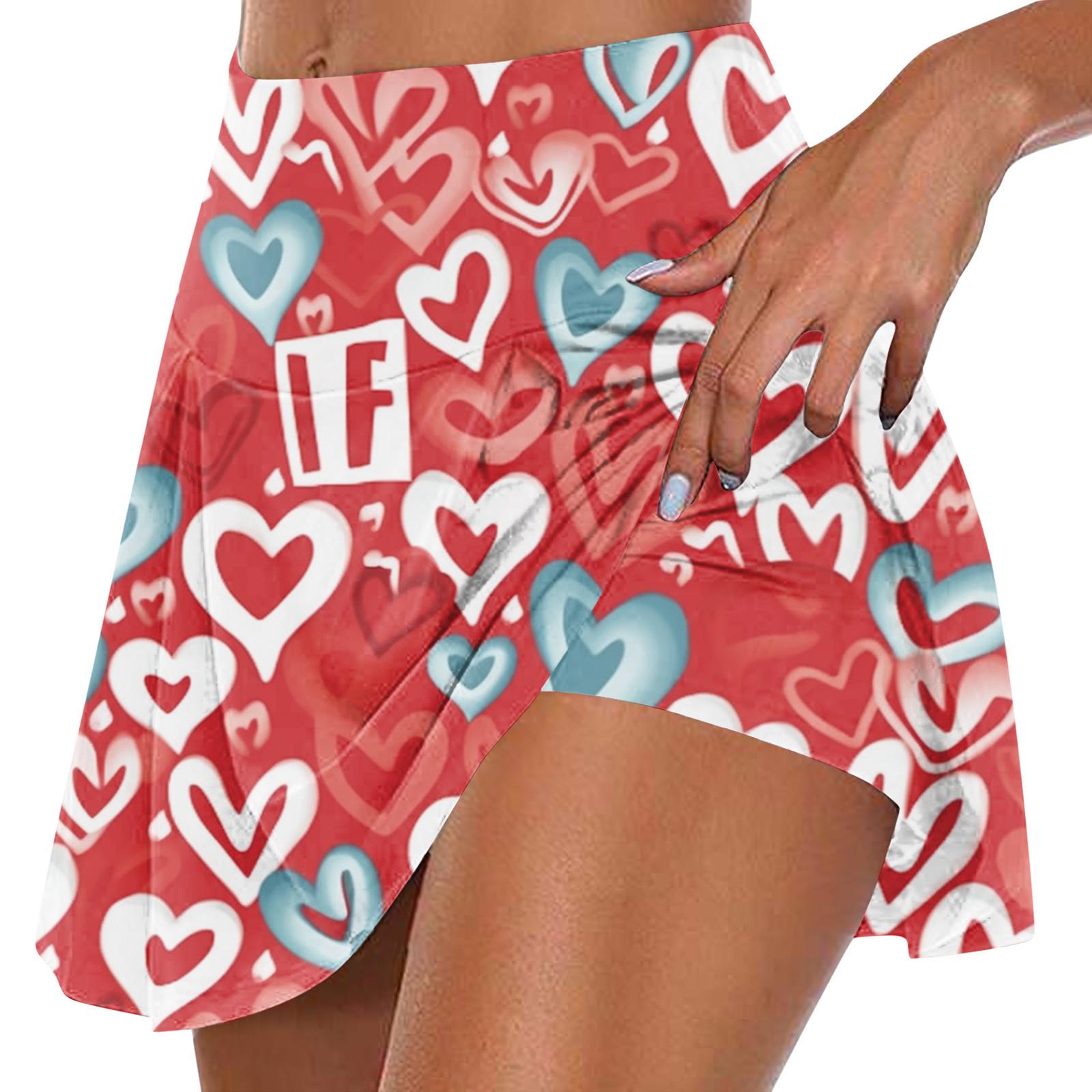 Женская мода с принтом на День Святого Валентина, повседневная спортивная фитнес-беговая йога, теннисная юбка, плиссированная короткая юбка, шорты, полуюбка XXXXXL красный