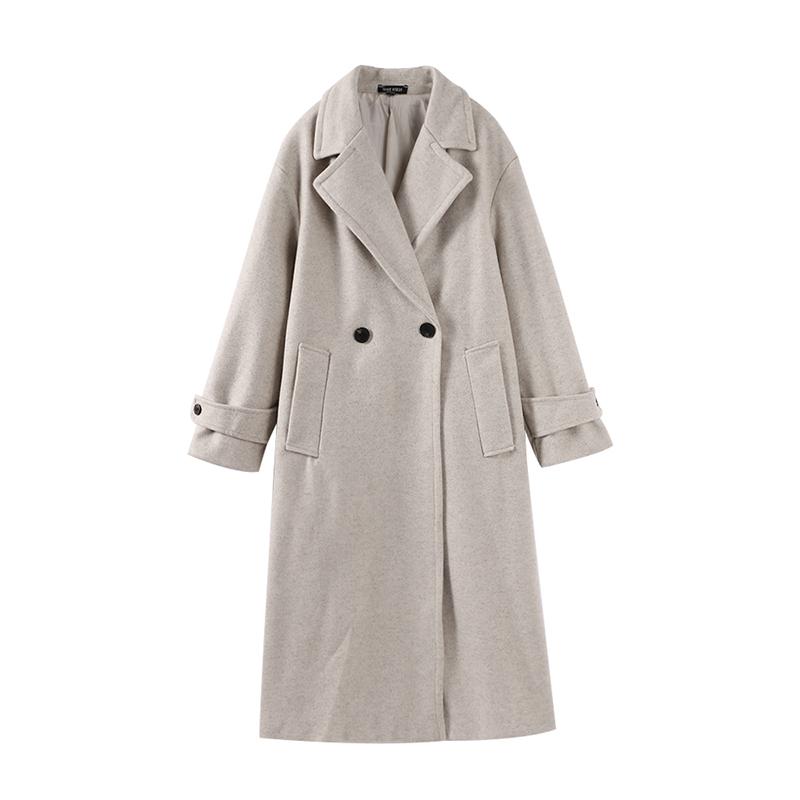 Женская мода шерстяная смесь теплое длинное пальто осень-зима свободный карман двубортный пиджак элегантное пальто с лацканами L хаки