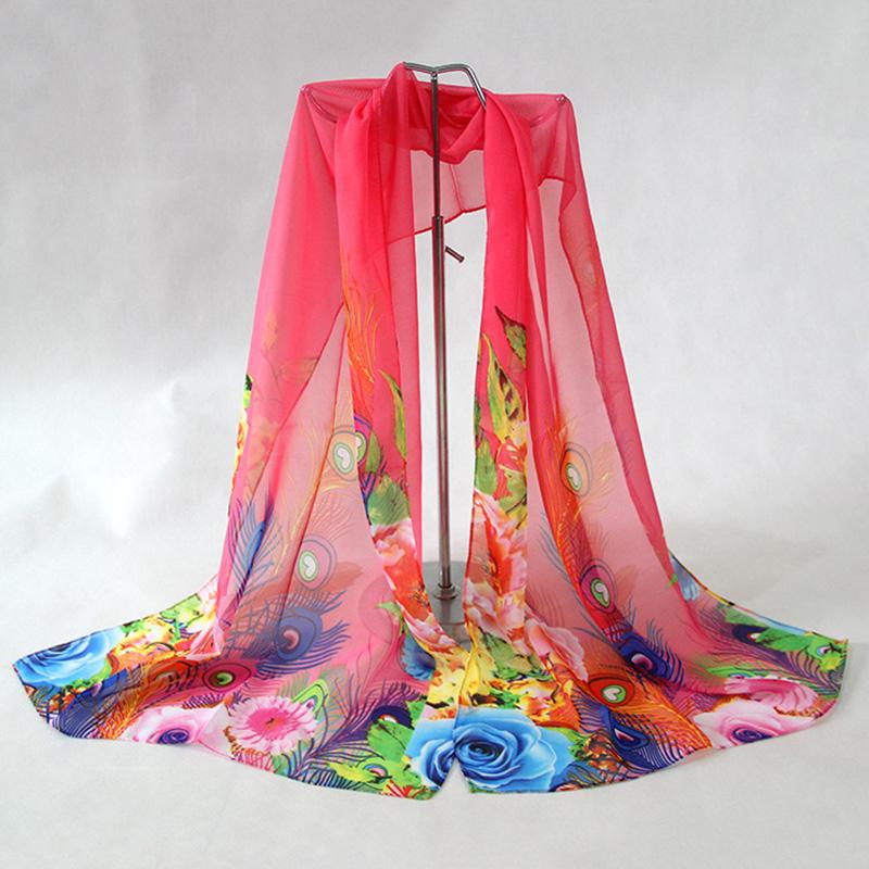 Женская мода шифоновая шаль летняя длинная накидка аксессуары шелковый шарф солнцезащитный крем пляжное полотенце цветочный принт накидка 160x50 см розовый