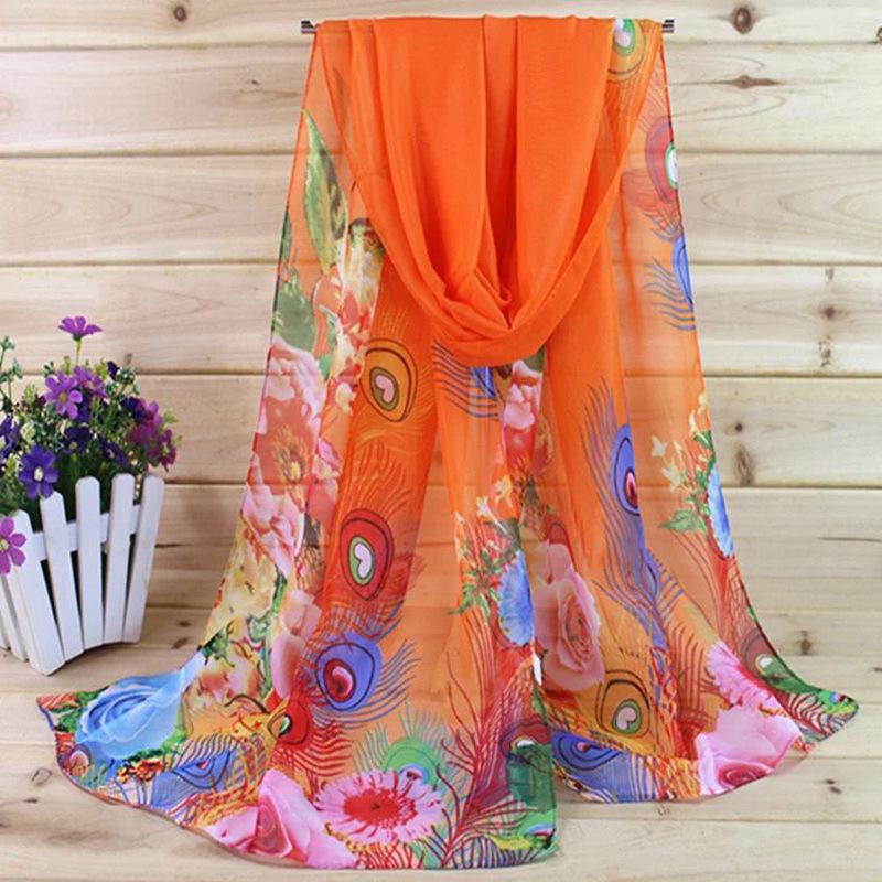 Женская мода шифоновый платок солнцезащитный шелковый шарф аксессуары длинный плащ летнее пляжное полотенце принт цветочный накидка саронг 160x50 см оранжевый
