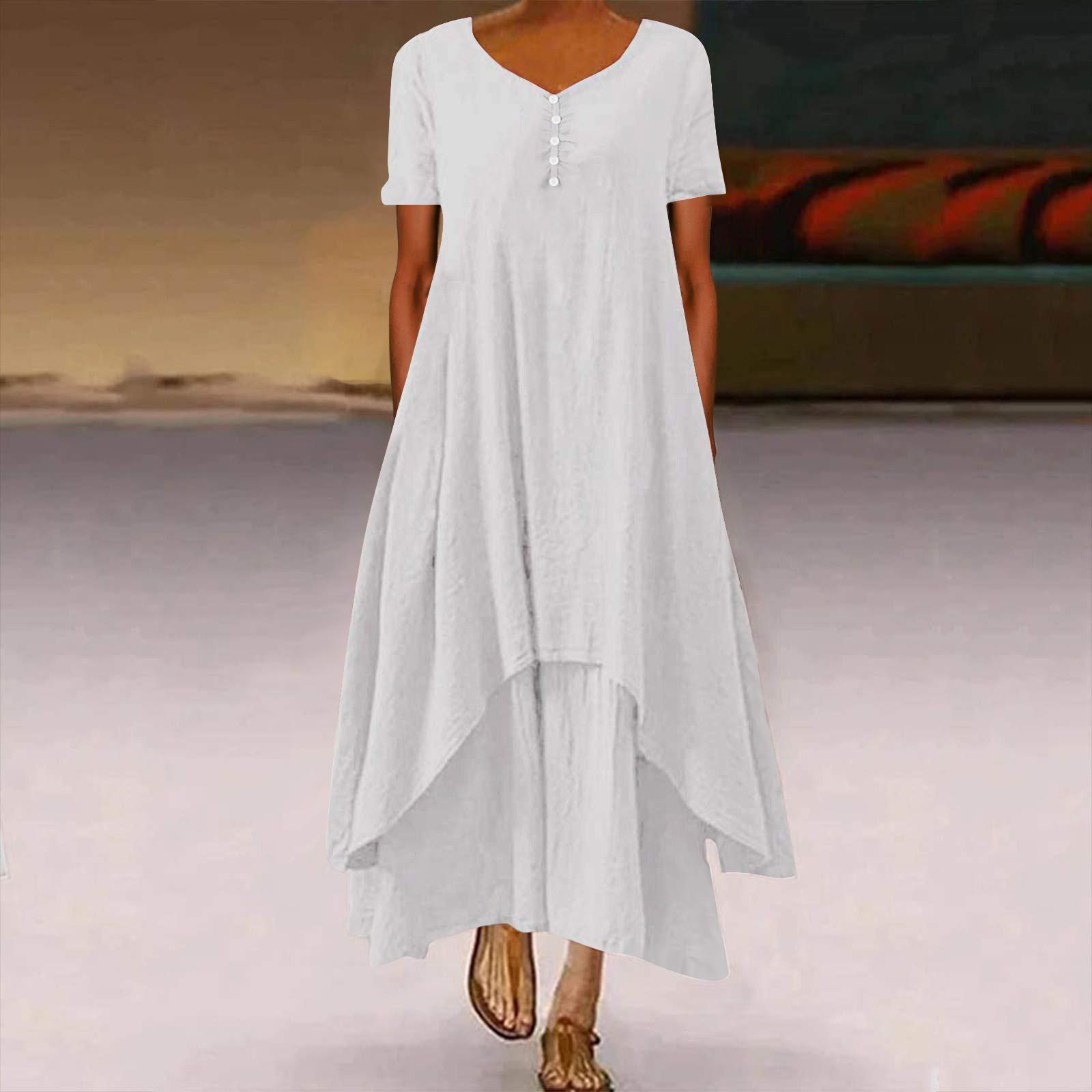 Женская мода Boho сплошной цвет с коротким рукавом свободное повседневное нерегулярное платье XXL белый