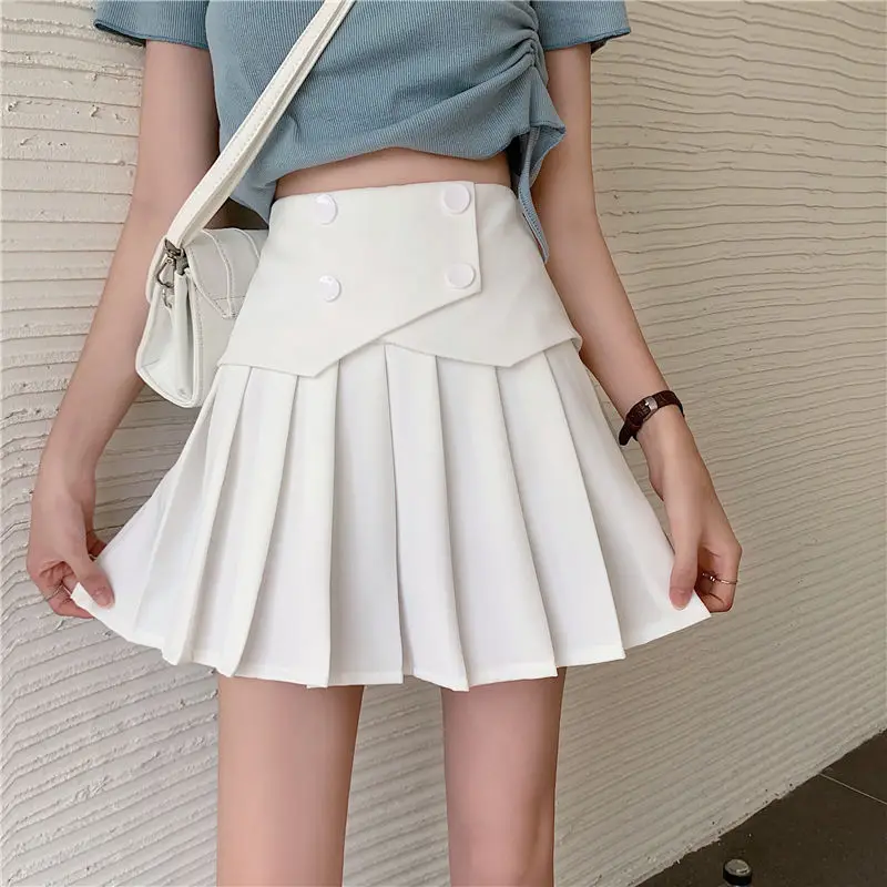 Женская модель 2022, черная плиссированная летняя корейская элегантная мини-юбка в стиле преппи с высокой талией в стиле пэчворк