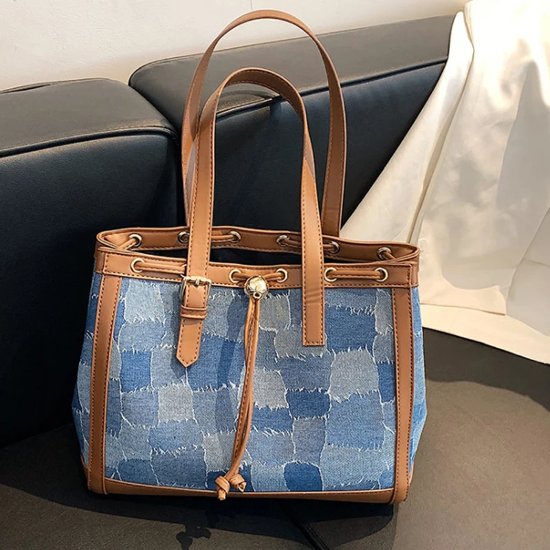 Женская модная большая сумка-тоут из денима в стиле ретро, роскошные женские сумки на плечо и кошельки, дизайнерские дорожные сумки для поку...