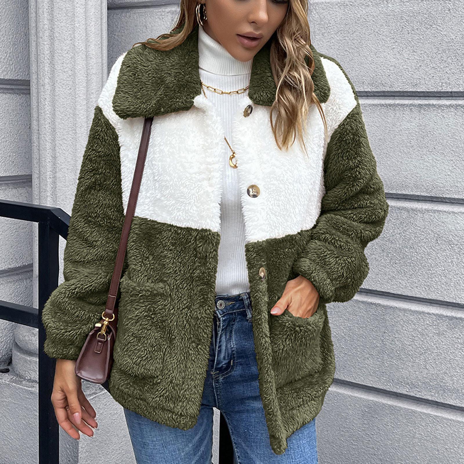 Женская модная двусторонняя плюшевая короткая однобортная куртка, верхнее пальто XL армия зеленый