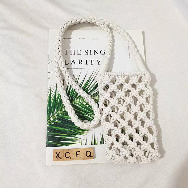 Женская модная маленькая сумка через плечо для телефона, однотонная плетеная крючком легкая плетеная сумка на плечо, пляжная сумка 10 x 18cm белый
