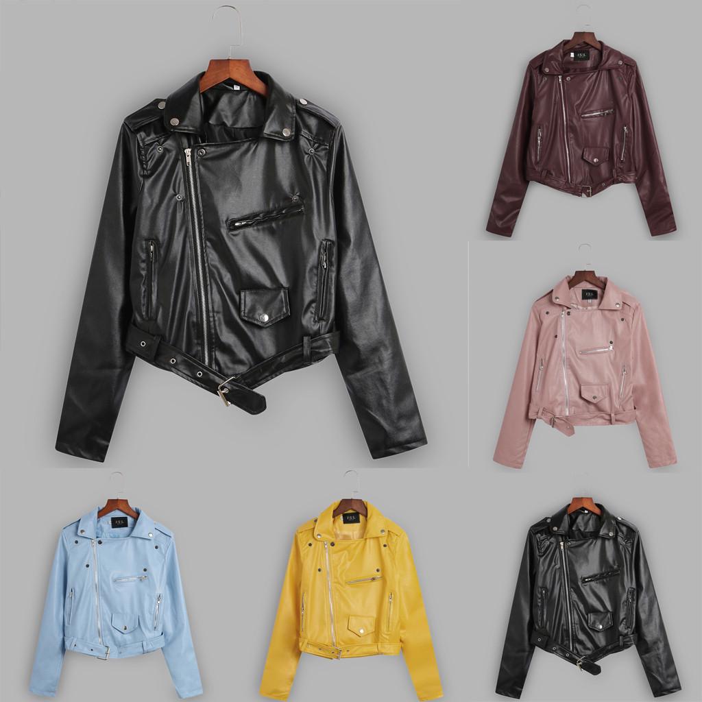 2020 spring locomotive zipper leather jacket female short suede motorcycle pockets black pu leather bikers jacket f10311