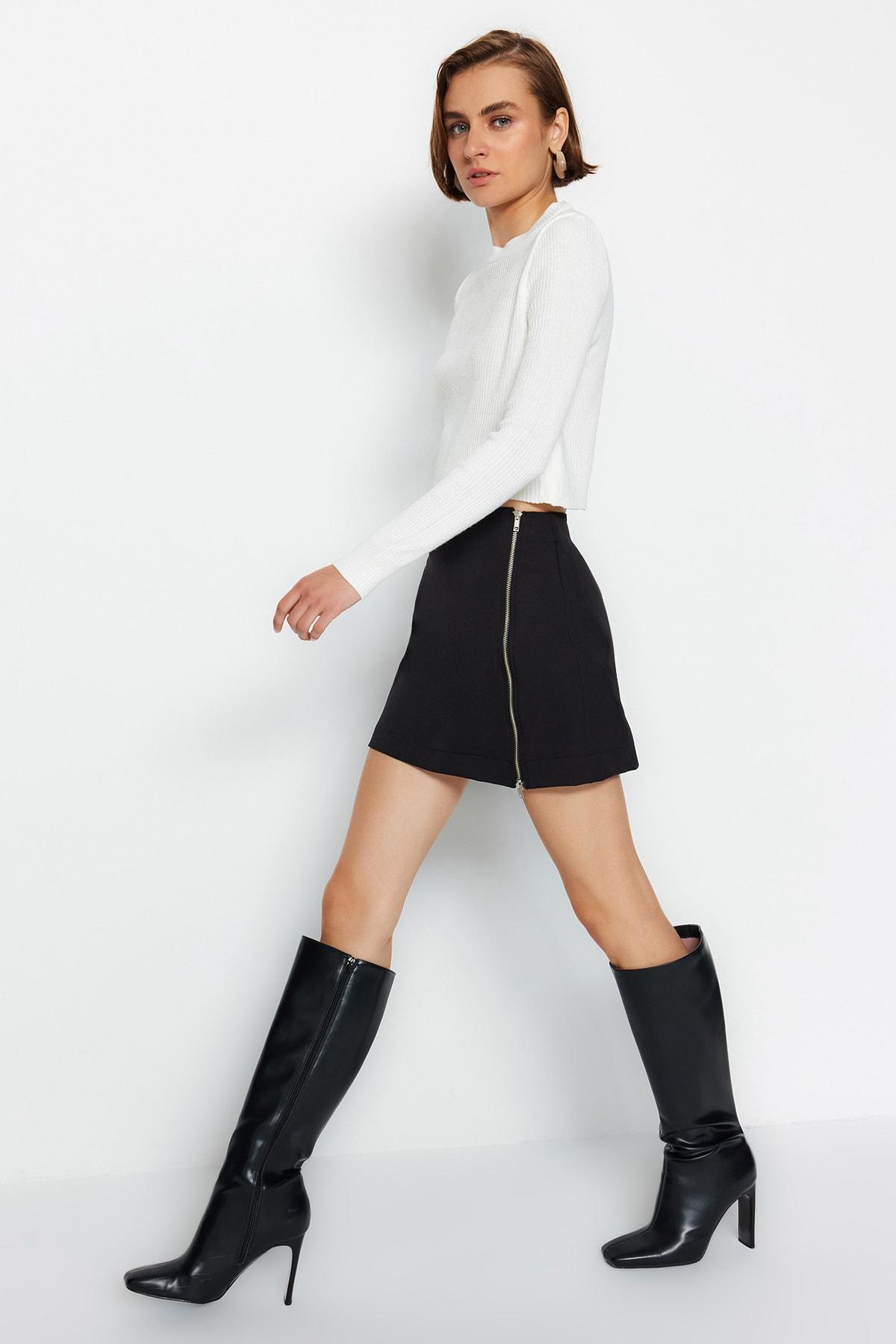 Женская модная новая юбка, черная тканая юбка миди с подробной молнией