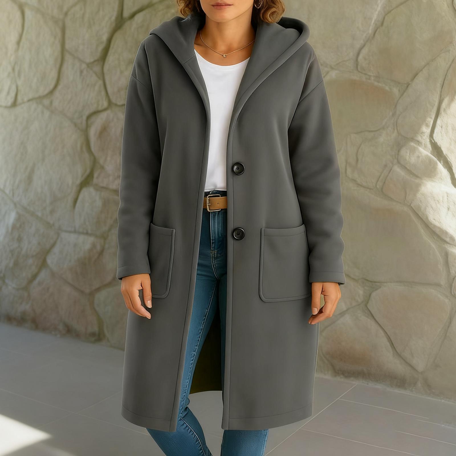 Женская модная однотонная минималистичная шерстяная куртка с капюшоном, на пуговицах, с длинными рукавами и карманами XL