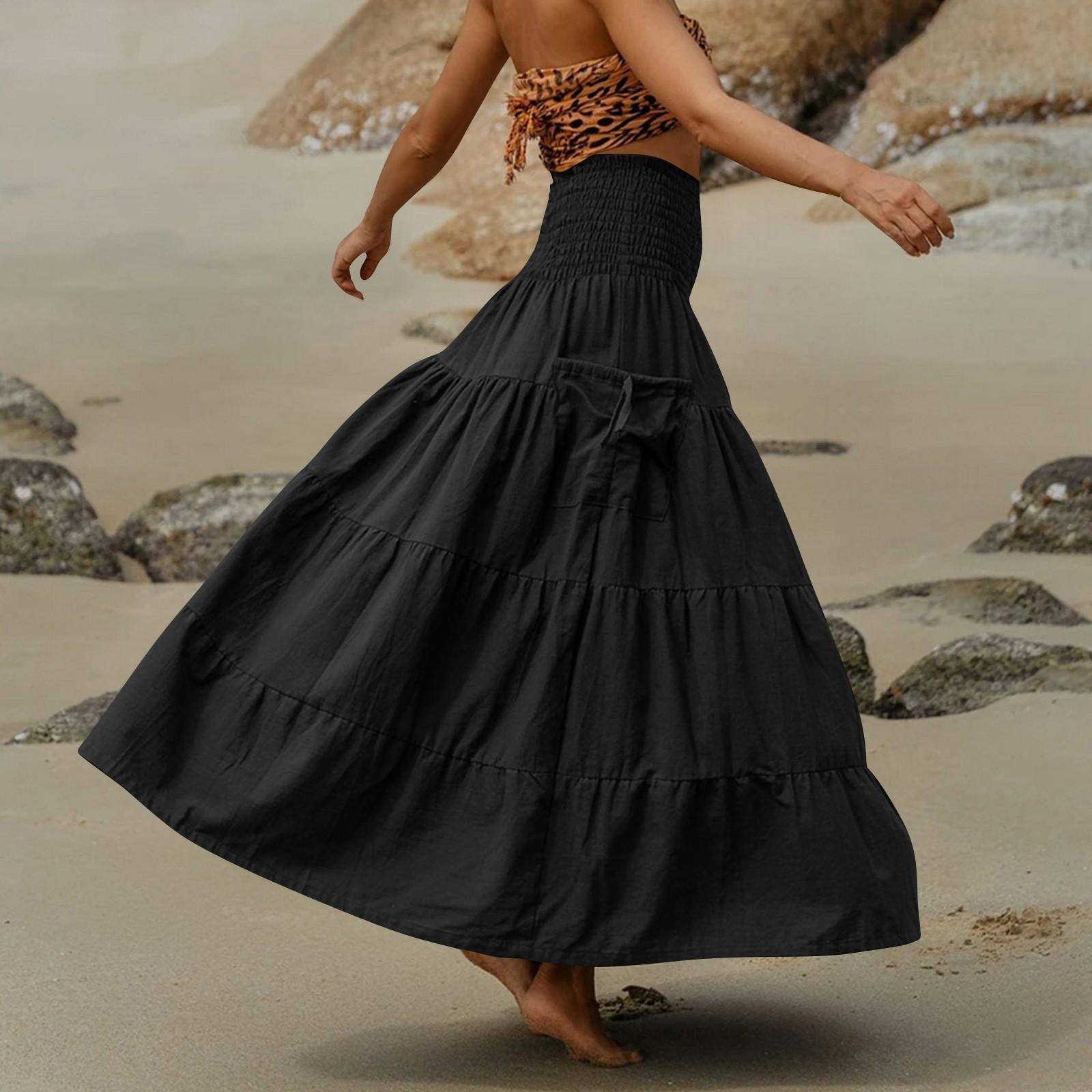 Женская модная однотонная полуюбка в стиле бохо, свободная длинная юбка с карманами. Юбка-бандаж Two Wear XL чёрный