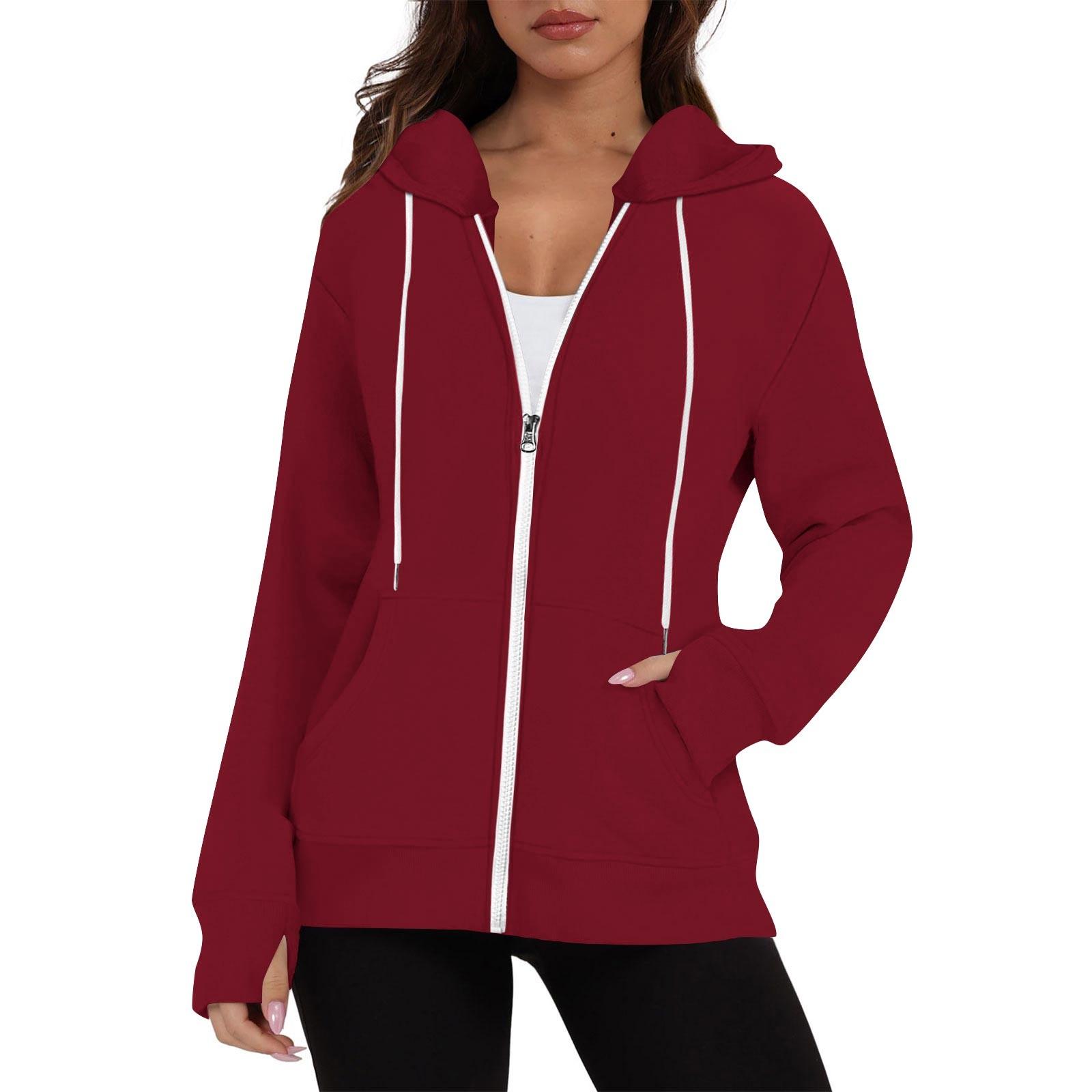 Женская модная однотонная толстовка с длинным рукавом, карманом, шнурком, капюшоном, молнией, отверстием для большого пальца S