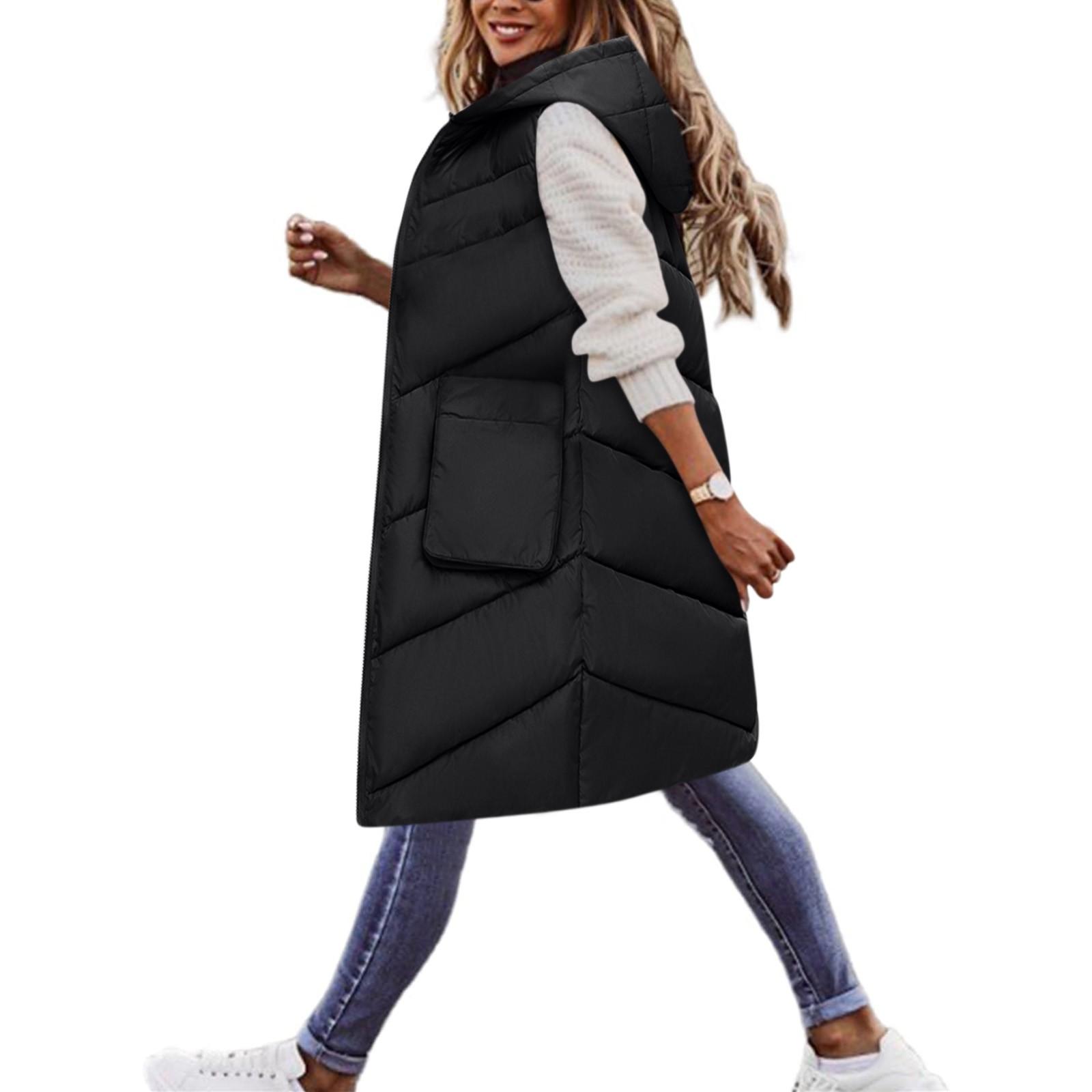 Женская модная осенне-зимняя пуховая хлопковая куртка с капюшоном без рукавов, хлопковый теплый жилет на плечах M чёрный