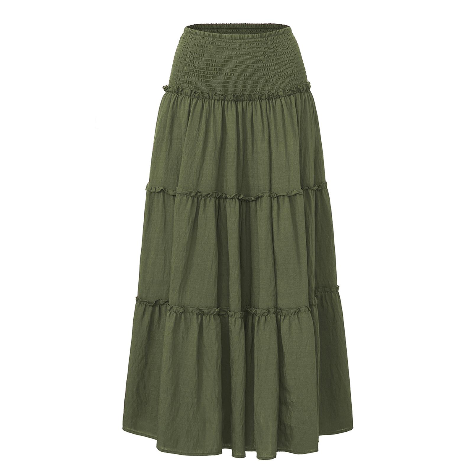 Женская модная плиссированная юбка с цветочным принтом и эластичным поясом, свободная юбка-трапеция с карманом L армия зеленый