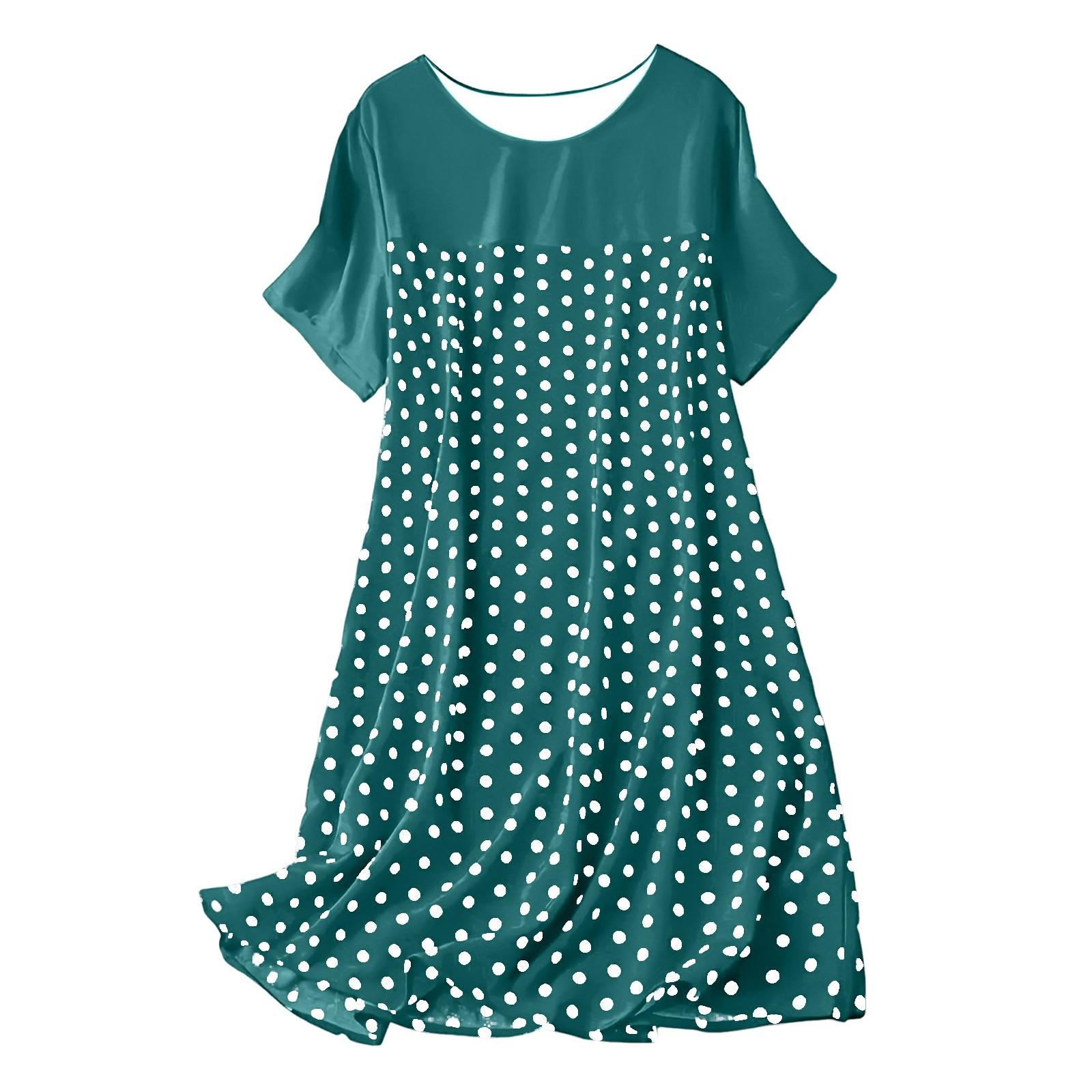 Женская модная и повседневная ночная рубашка в горошек с круглым вырезом и короткими рукавами, удобное платье XXL зелёный