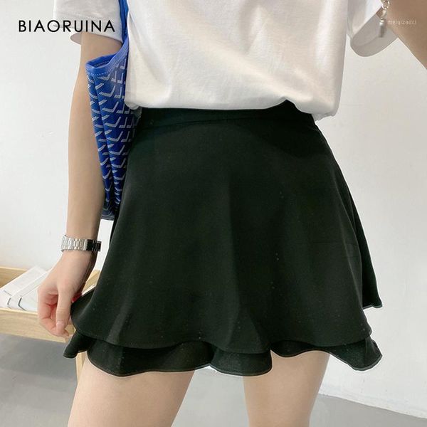 biaoruina women's black chiffon casual short ruffles with lining side zipper female high waist fashion summer short1, White;black