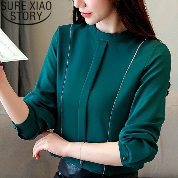 fashion chiffon long sleeve women stand solid blouse shirt womens blouses shirts 2453 50 210415, White