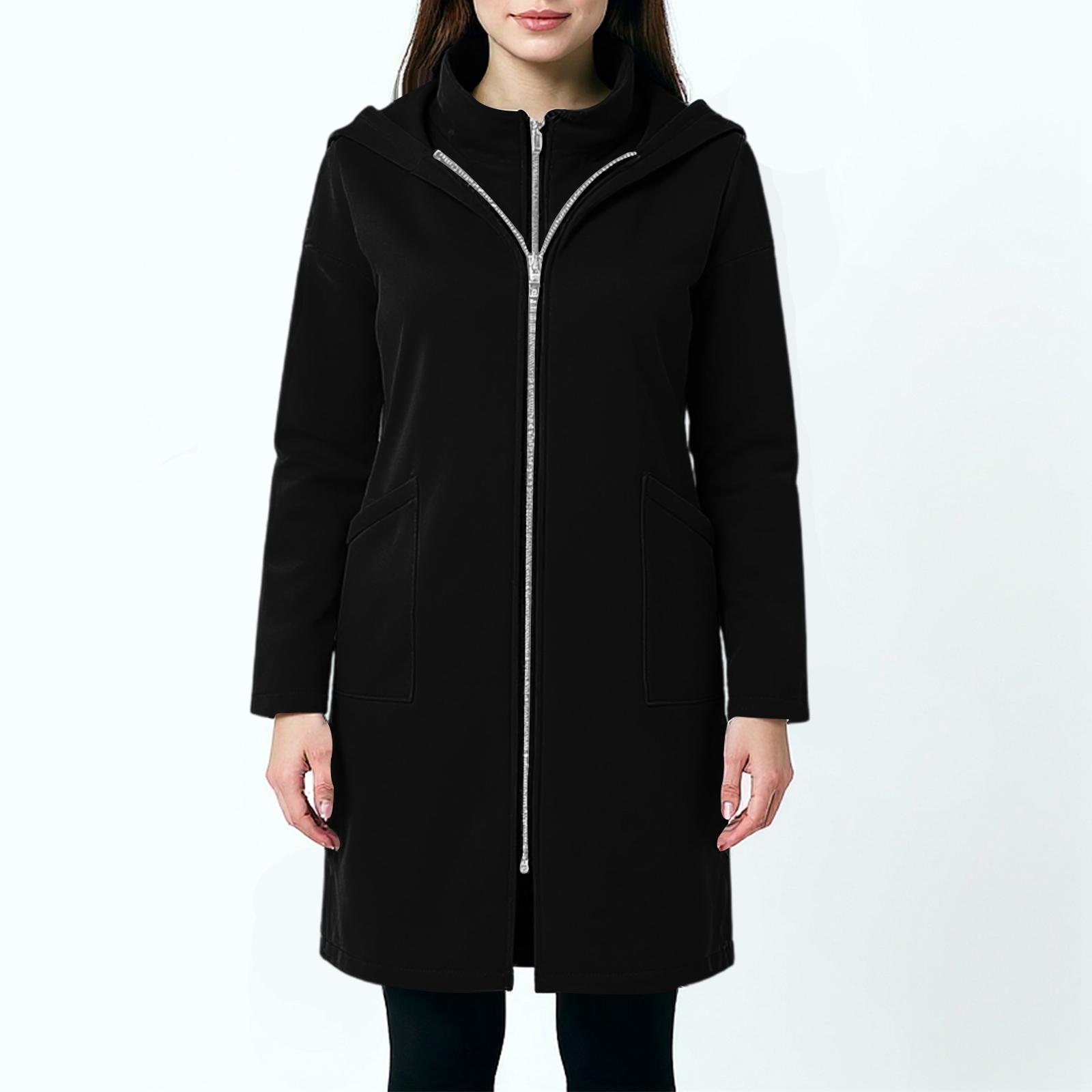 Женская модная повседневная однотонная толстовка с капюшоном и карманом, длинная, средней длины, свободное пальто из двух частей XL чёрный