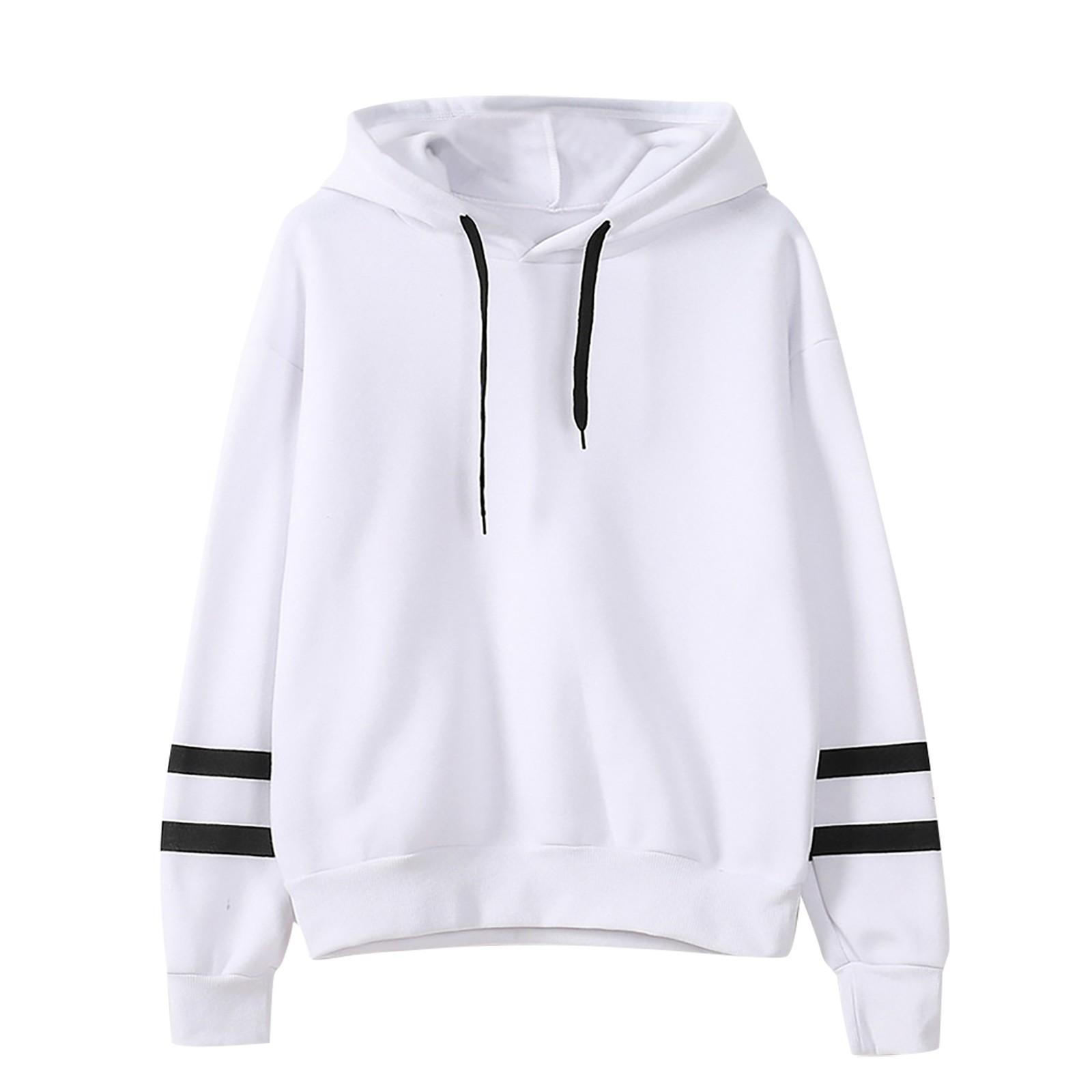 Женская модная повседневная свободная однотонная толстовка с капюшоном и длинным рукавом, блузка XL белый