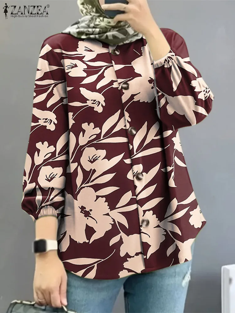 ZANZEA Vintage Women Casual Long Sleeve Tops Bohemian Floral Printed Blusas Loose Tunic Tops Mujer Muslim Ramadan Turkey Blouse