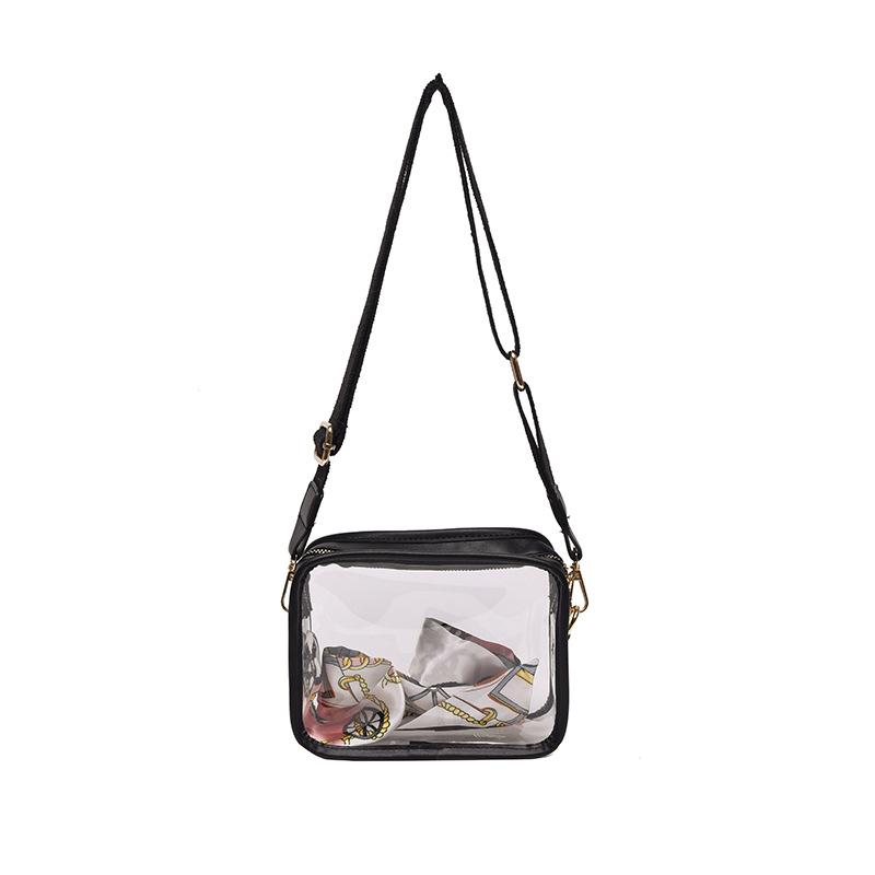 Женская модная прозрачная мини-квадратная сумка через плечо для девочек, дамская декоративная маленькая прозрачная сумка из ПВХ для телефона, одобренная стадионом, сумка-слинг чёрный