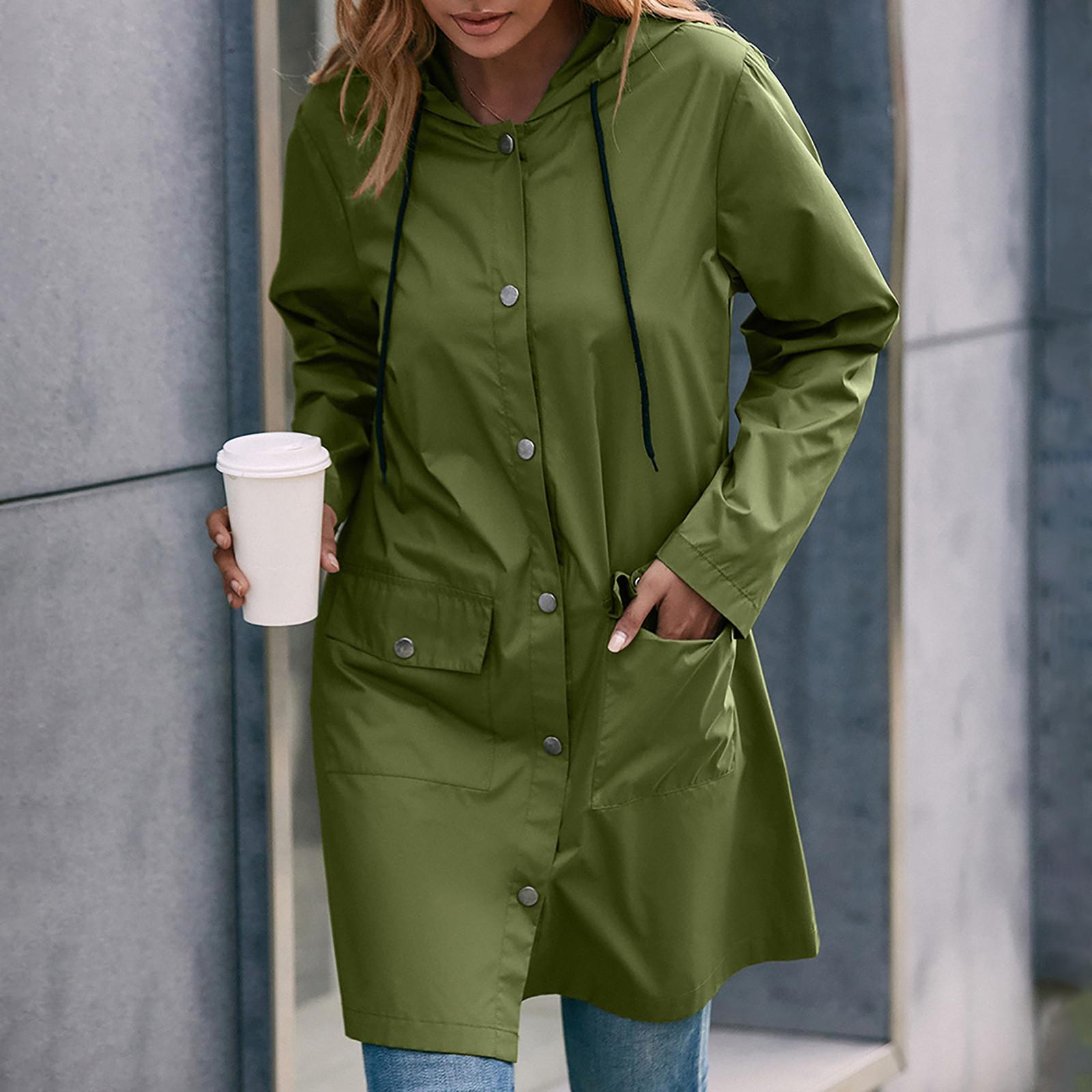 Женская модная простая однобортная однобортная однобортная ветрозащитная и непромокаемая ветрозащитная куртка с капюшоном для занятий спортом на открытом воздухе с капюшоном средней длины M армия зеленый