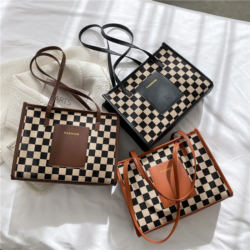 Женская модная сумка из японской кожи Kores, Большая вместительная черно-белая клетчатая сумка, Новая повседневная сумка на плечо, сумка-тоут, ...