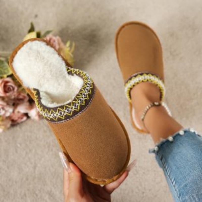 Женская модная теплая не устающая ноги толстая подошва мягкая эластичная удобная амортизация водонепроницаемая нескользящая повседневная зимняя обувь хлопковые тапочки 42-43 темно-коричневого