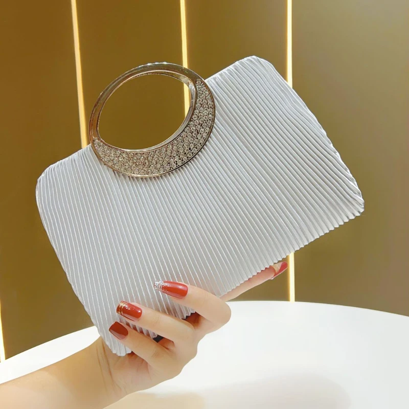 Женская морщинистая вечерняя сумка с блестками и бриллиантами, женская сумка на плечо с цепочкой, кошелек для свадебной вечеринки, модные элегантные клатчи в форме полумесяца