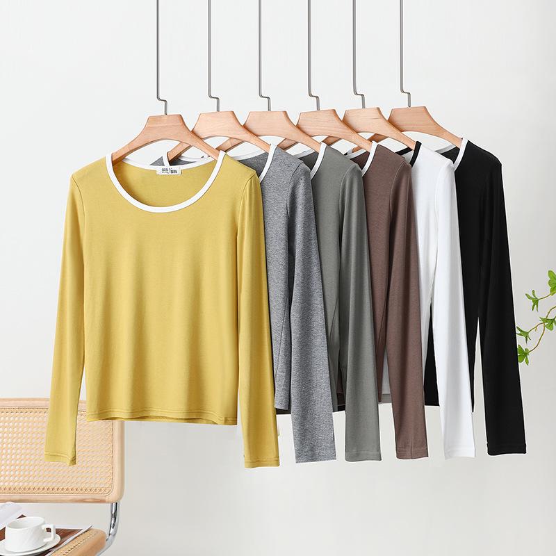 Женская мягкая, приятная к коже футболка с круглым вырезом и длинным рукавом в стиле колор-блок - Свободный, стройнящий, универсальный топ на весну/лето XXL (120-160 jin)
