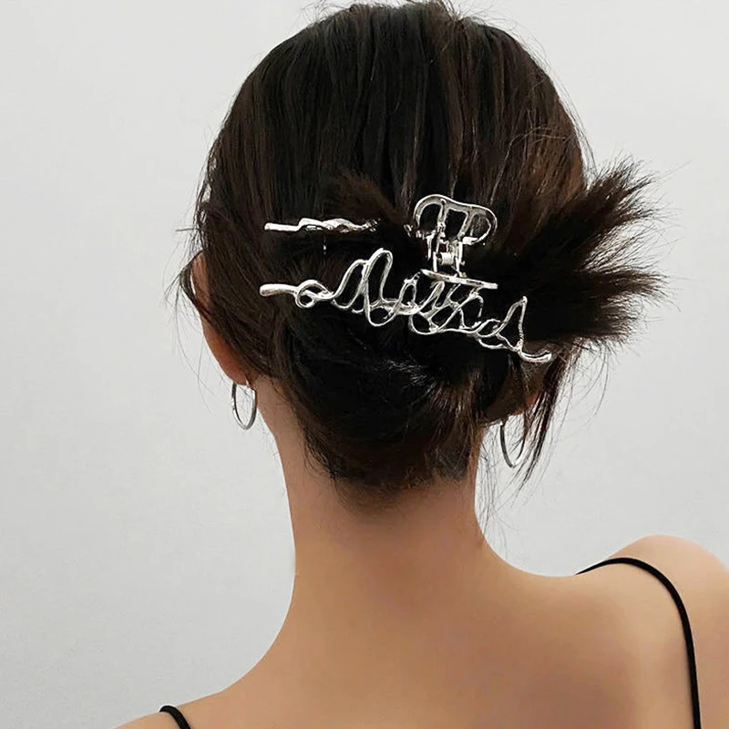 Женская необычная заколка для волос в стиле панк, металлическая Серебряная заколка неправильной формы с геометрическим дизайном, нескольз...