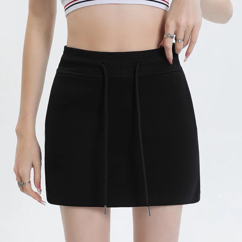 Женская новая летняя юбка-шорты спортивного стиля для горячих девушек с высокой талией, повседневная, облегающая, прикрывающая бедра, серая M чёрный