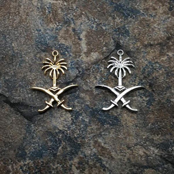 pendants emblem of saudi arabia logo gold and silver rosary muslim tassel, Black